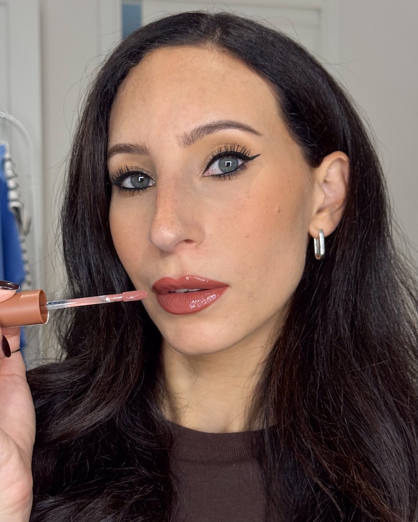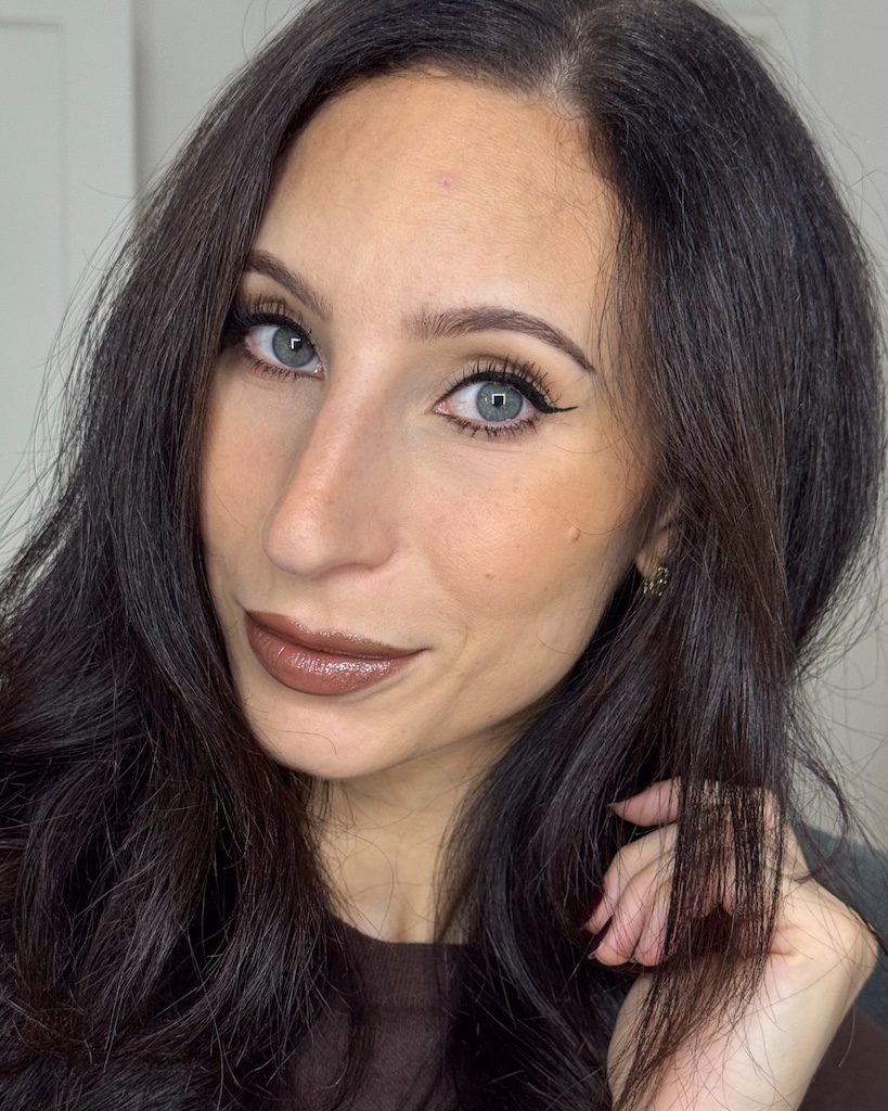 Outfit gonna a pieghe e giacca marrone